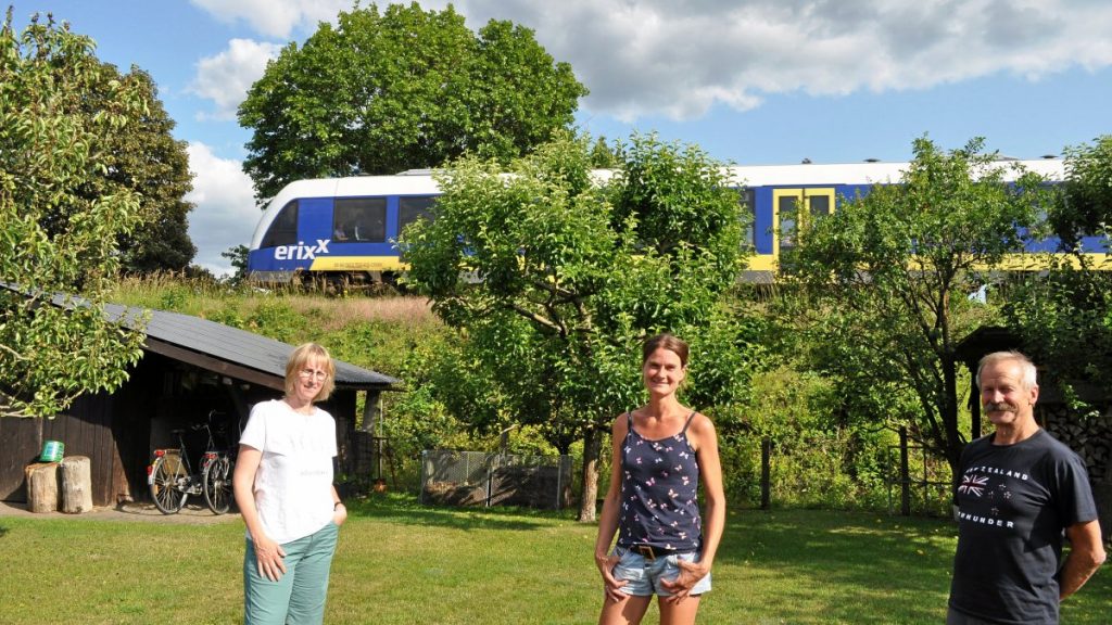 Dass die Züge überhaupt mit einem Warnsignal auf ihr Herannahen hinweisen müssen, liegt am unbeschrankten Bahnübergang Triftweg und dem eingeschränkten Sichtradius. Und Pfeifen ist dabei noch wohlwollend beschrieben. Der schrille Ton beendet jedes sommerliche Dösen unter dem Birnenbaum. Bestenfalls. Mittlerweile macht es die Anwohner beispielsweise am Potsdamer und Schweriner Ring mürbe. Und mit Blick auf den geplanten Stundentakt der Regiobahn ab Dezember nimmt es eine Dimension an, die die Anwohner nicht mehr hinnehmen wollen. Auch als Kerstin und Michael Stein mit Eckart van der Post, alle drei Mitglieder der Bürgerinitiave, mit Isenbüttels Bürgermeisterin Tanja Caesar auf der Terrasse sitzen, dröhnt das Pfeifen durch die Gärten. Fast wie bestellt, um das Problem deutlich zu machen.