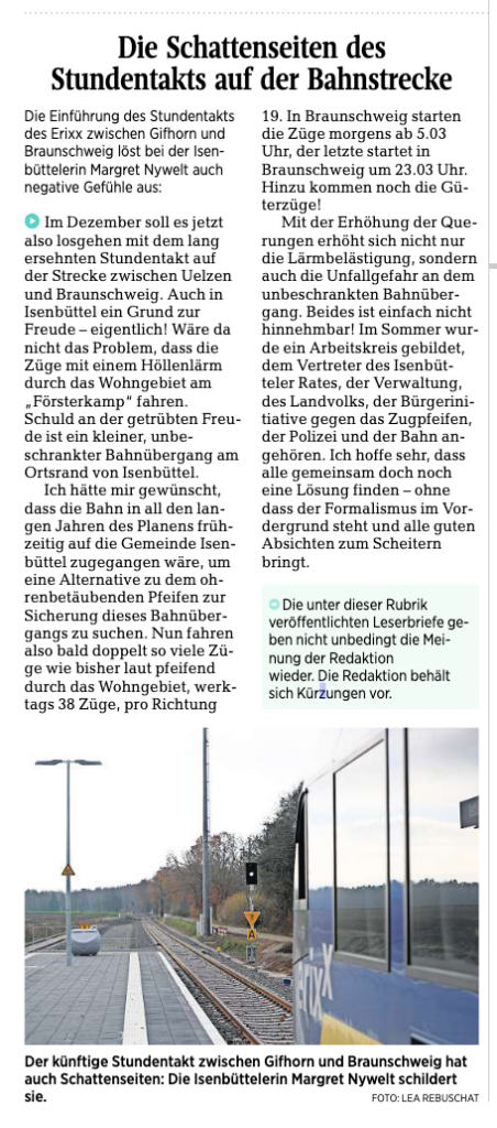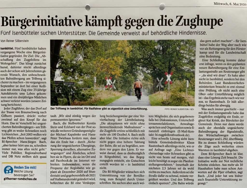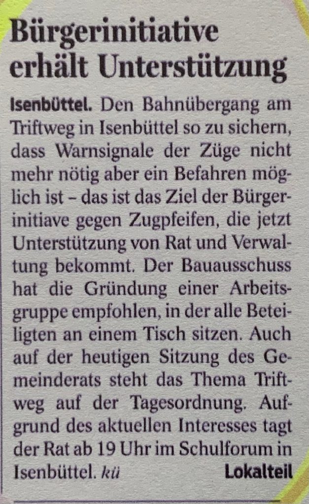 Unterstützung für Isenbütteler Bürgerinitiative gegen Zugpfeifen